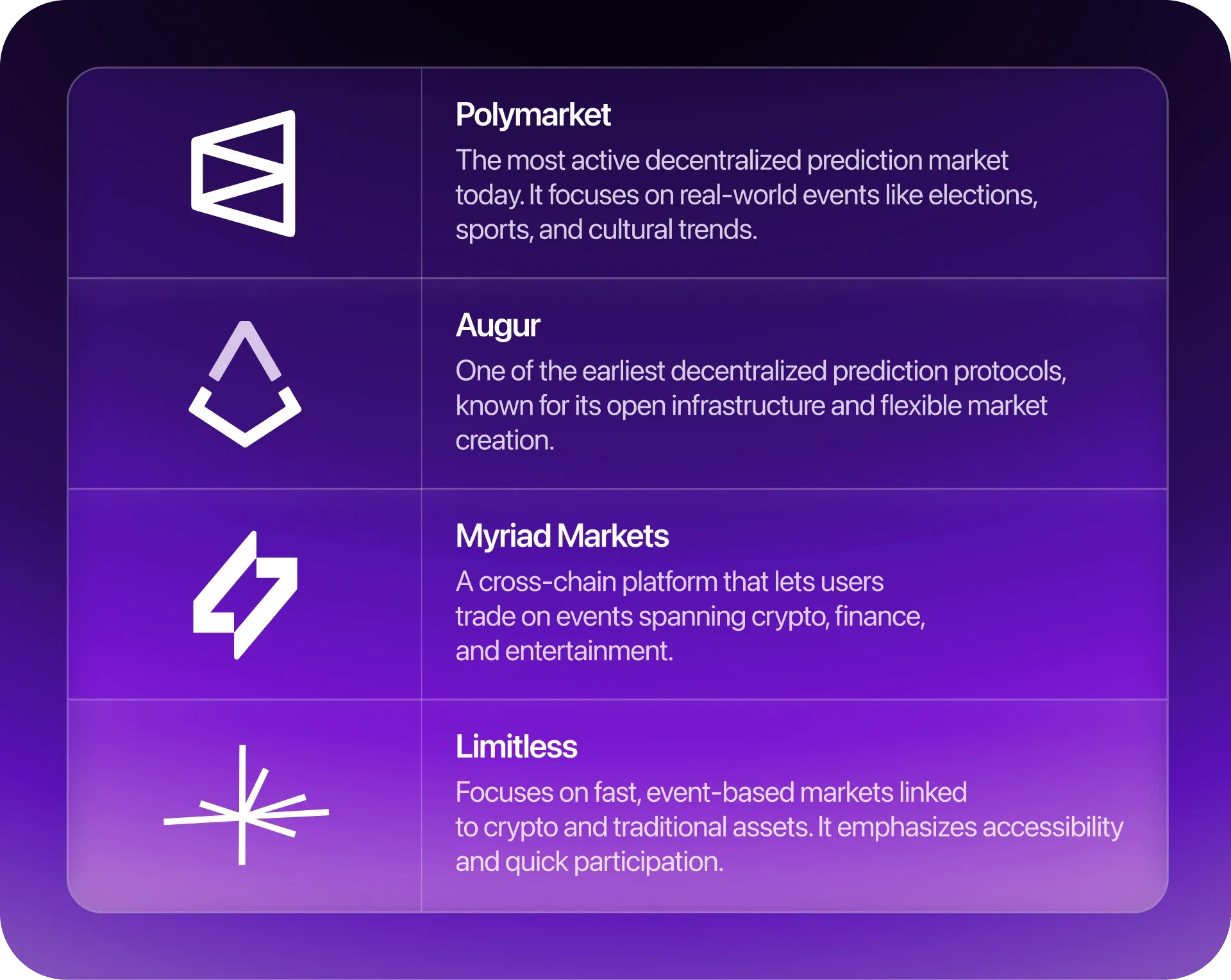Decentralized prediction markets continue to evolve, with platforms like Polymarket and Myriad Markets each serving different needs, from real-world event trading to community forecasting.